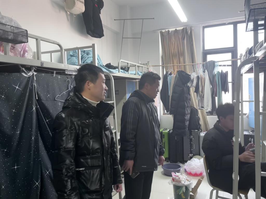 在走访宿舍过程中,学院领导和老师们与员工进行了亲切交流,对各班的返校情况进行了详细的了解。并提醒同学们要注意宿舍防水和用电安全,保持良好的卫生习惯,合理调整好心态,以饱满的精神投入到接下来的学习生活中。
