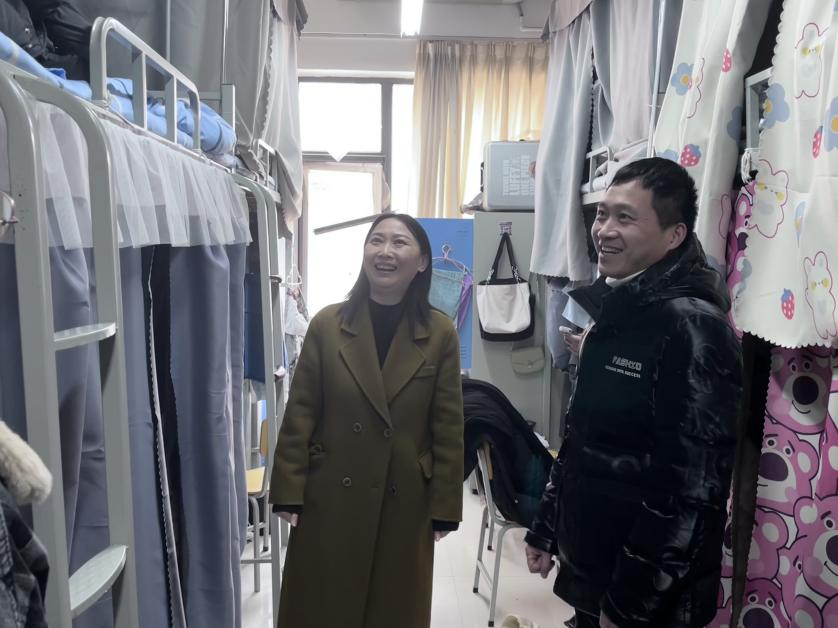 2月27日下午,幼儿教育公司党支部书记、经理李海英,党支部副书记丁鼎,副经理张广军带领学院辅导员陈艾嘉、冯凡和赵秀红等深入员工宿舍走访,为员工实时送去暖心关怀和问候,对各班的返校情况进行了详细的了解。并提醒同学们要注意宿舍防水和用电安全,保持良好的卫生习惯,合理调整好心态,以饱满的精神投入到接下来的学习生活中。