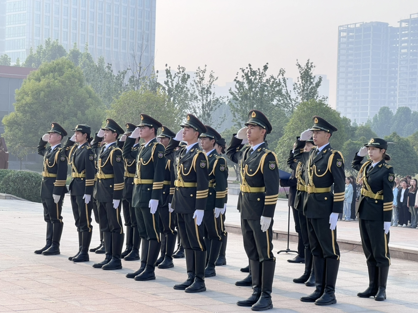 全体师生整齐列队,国旗护旗手们迈着铿锵有力的步伐,将国旗护送至升旗台。伴随着庄严的国歌,五星红旗冉冉升起,全体师生庄严肃立,向国旗行注目礼,向祖国表达崇高的敬意。