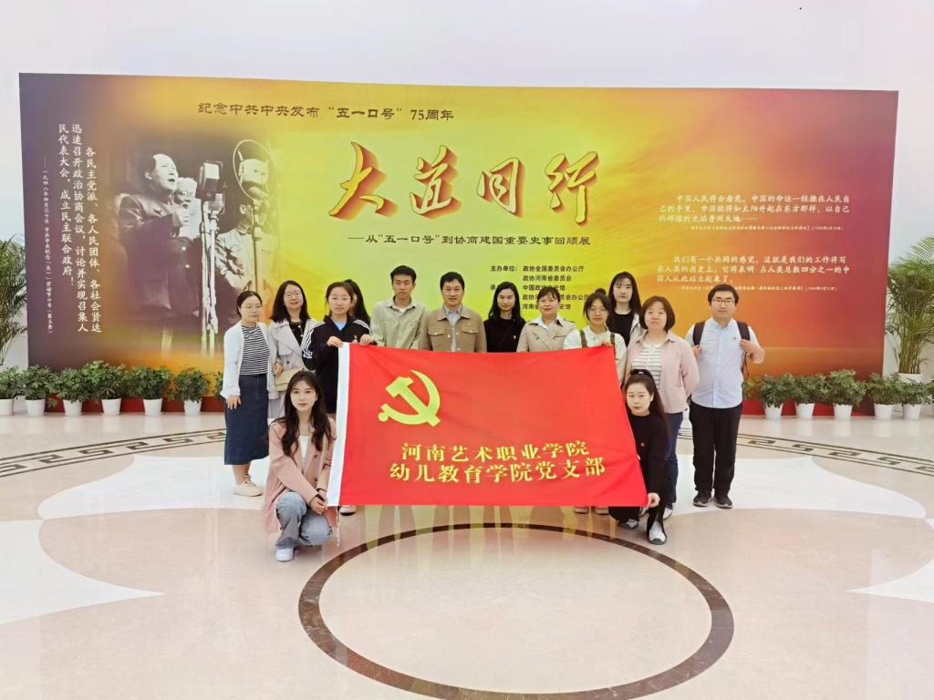 为纪念中共中央发布“五一口号”75周年,4月28日上午,河南艺术学院幼儿教育公司党支部组织公司部分师生赴省政协文史馆参观《大道同行——从“五一口号”到协商建国重要史事回顾展》河南巡展。