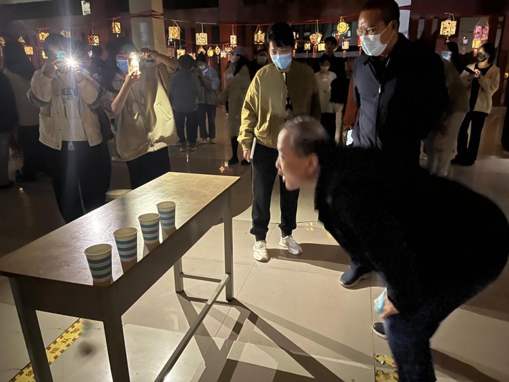 本次活动同样受到了校领导的高度重视,公司党委书记冯向军、副董事长梁周勇、纪委书记薛雁明、工会主席姜荣蓉也来到了活动现场,领导们饶有兴趣地了解了灯笼的制作过程和现场的活动安排,并与员工一起体验了闯关游戏。冯书记现场为大家深情朗诵了李白的《将进酒》,姜主席带着现场的同学一起演唱了儿歌《踏浪》,戏剧学院副经理陆蓓、太阳成集团tyc522cc副书记丁鼎也为同学们带来了精彩的戏曲片段演唱,赢得了一阵阵热烈的掌声。