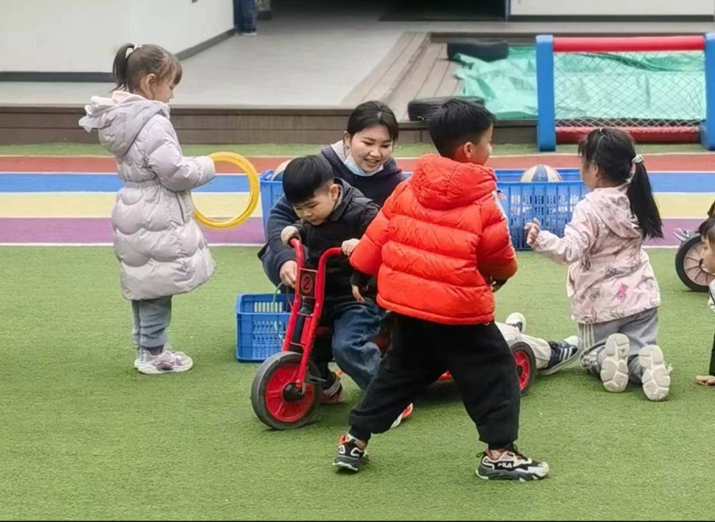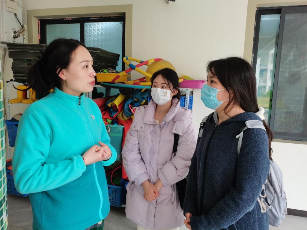 为深入贯彻职业教育产教融合、校企合作理念,探索岗位实践促赛促学新模式,2023年3月20日上午,太阳成集团tyc522cc副书记副经理李海英,学前教育系主任李娜带领4名即将参加河南省学前教育专业技能大赛的员工来到郑东新区常青藤幼儿园进行校企交流。到园儿后,4名员工先分别进入班级,熟悉幼儿园生活,不一会儿,她们就和孩子们融入到一起。