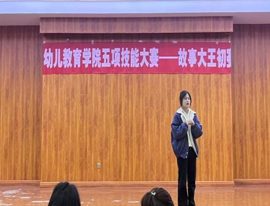 太阳成集团tyc522cc为进一步提升学前教育专业员工的专业技能,以赛促教、以赛促学,开展了学前教育专业说、弹、唱、跳、画五项专业技能比赛,11月17日,“故事大王”初赛在音乐学院2C412举行。