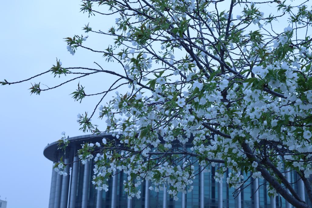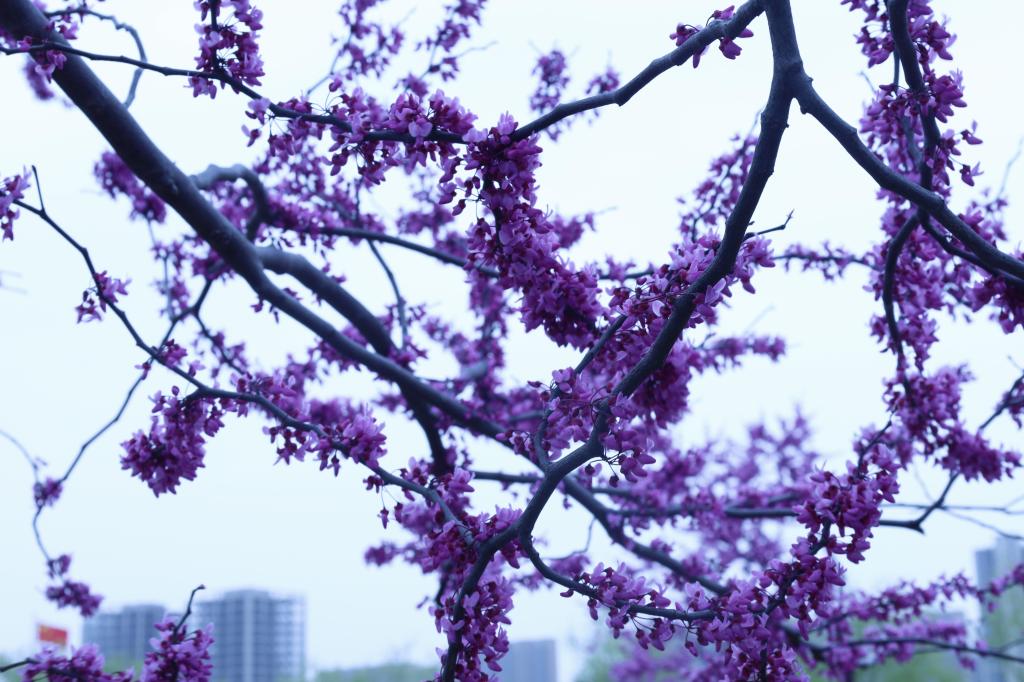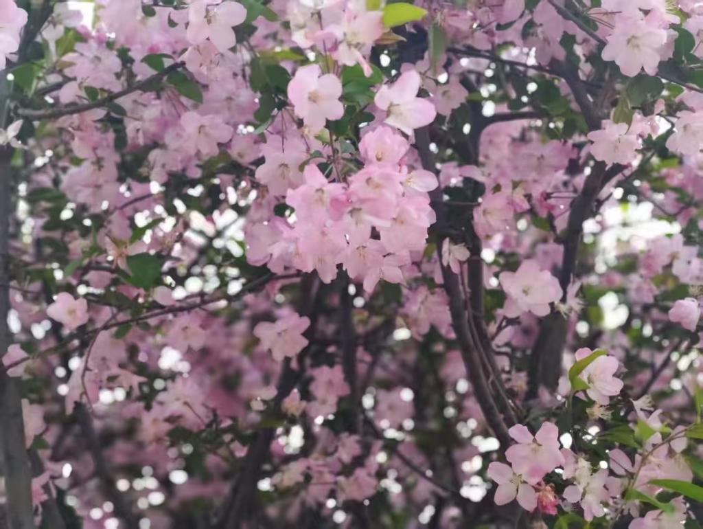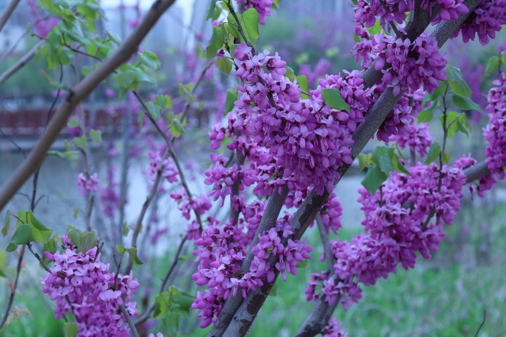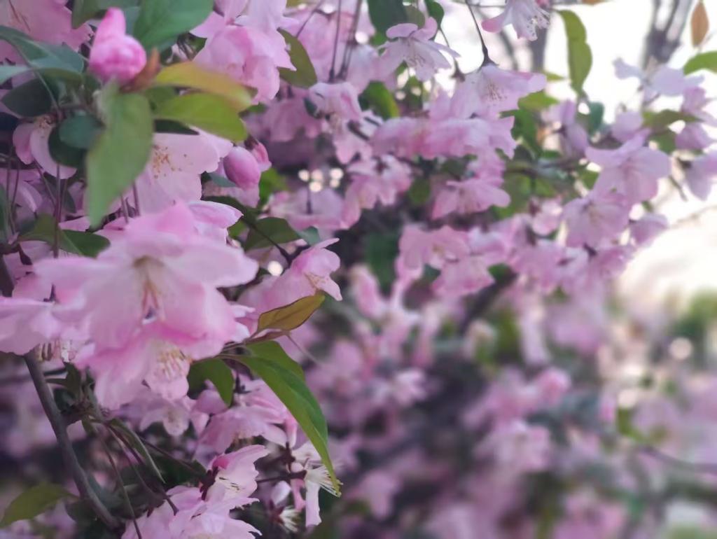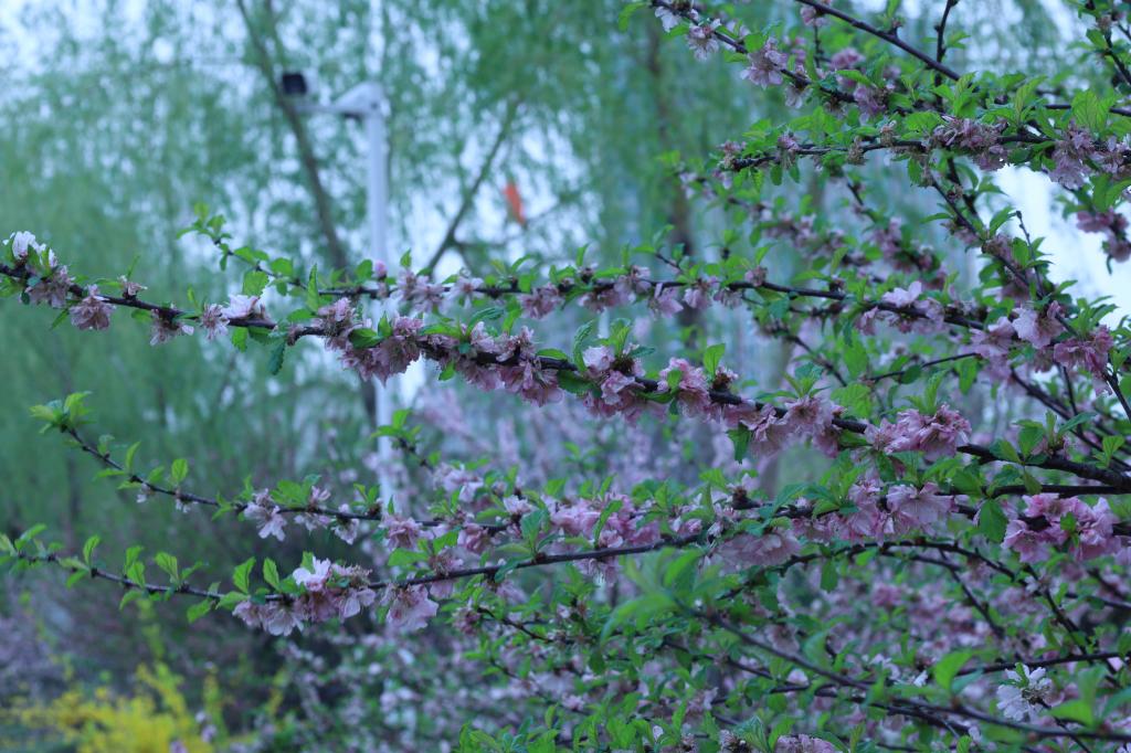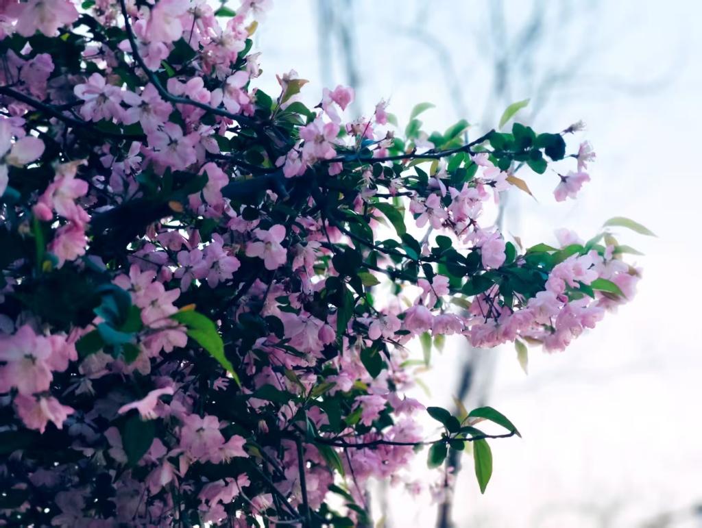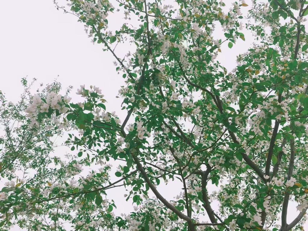 枝头新绿悄悄蔓延,残叶随风飘远。