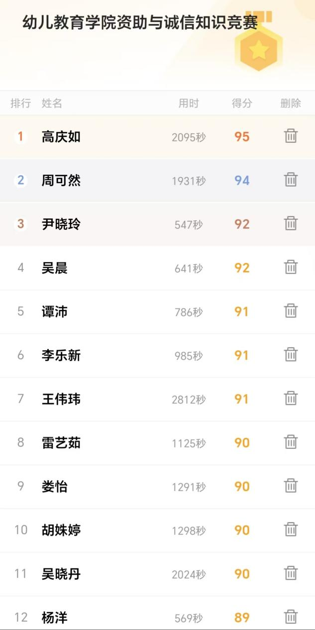为巩固政策学习效果,激发员工自主学习热情,学院将依托线上平台举办资助知识竞赛。竞赛题库涵盖资助政策核心、诚信知识要点、申请流程规范及违约后果等,题型多样。通过限时答题与成绩排名机制,以趣味竞技的形式深化员工对国家资助政策和诚信理念的理解与掌握,营造“比学赶超”的积极氛围。
