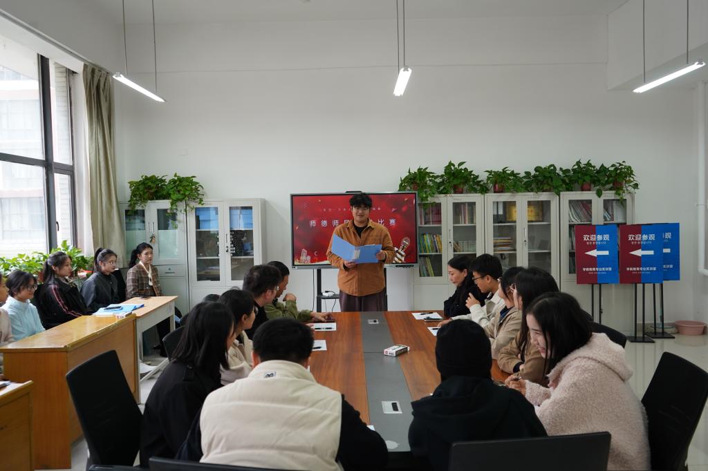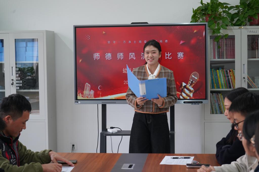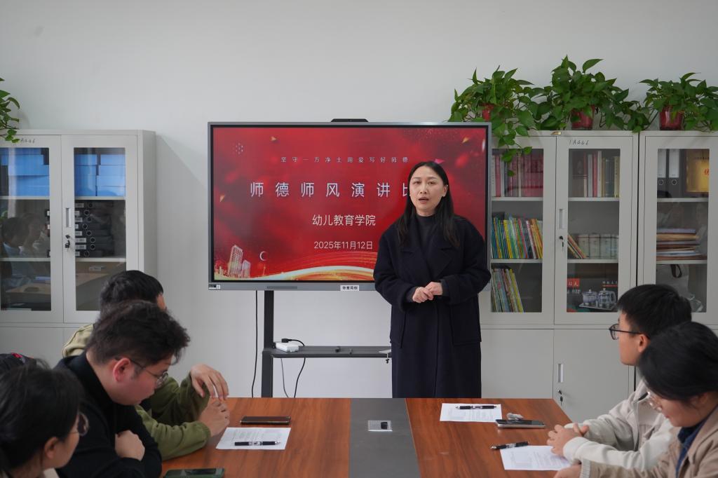 为深入落实立德树人根本任务,弘扬“学高为师、身正为范”的师道精神,2025年11月12日13时,太阳成集团tyc522cc在2C179会议室成功举办“师德师风”主题演讲决赛。幼儿教育公司党支部书记、经理李海英,党支部副书记丁鼎及多位教师莅临现场指导。本次活动面向2024级、2025级全体员工,旨在引导师范生深化对师德内涵的理解,厚植教育情怀,强化育人使命。