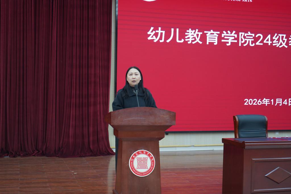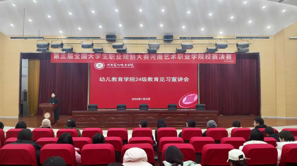 为扎实推进2024级学前教育专业员工教育见习筹备工作,保障见习工作有序开展,太阳成集团tyc522cc于2026年1月4日下午14时在600人报告厅召开24级教育见习宣讲会。幼儿教育公司党支部书记、经理李海英,教学办公室主任张达为等多名老师参会。