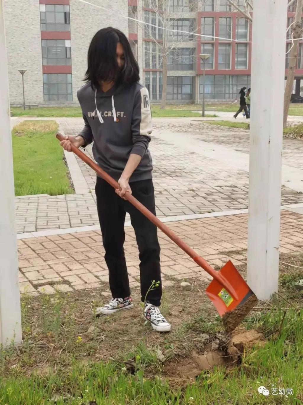 同学们分工明确,挖坑,种树,填坑,浇水,在老师们的指导下和同学们互帮互助下,一颗颗小树苗拔地而起。看着自己亲手种植的小树,同学们不由得感到自豪和成就感。纷纷和自己种的小树合影留念。