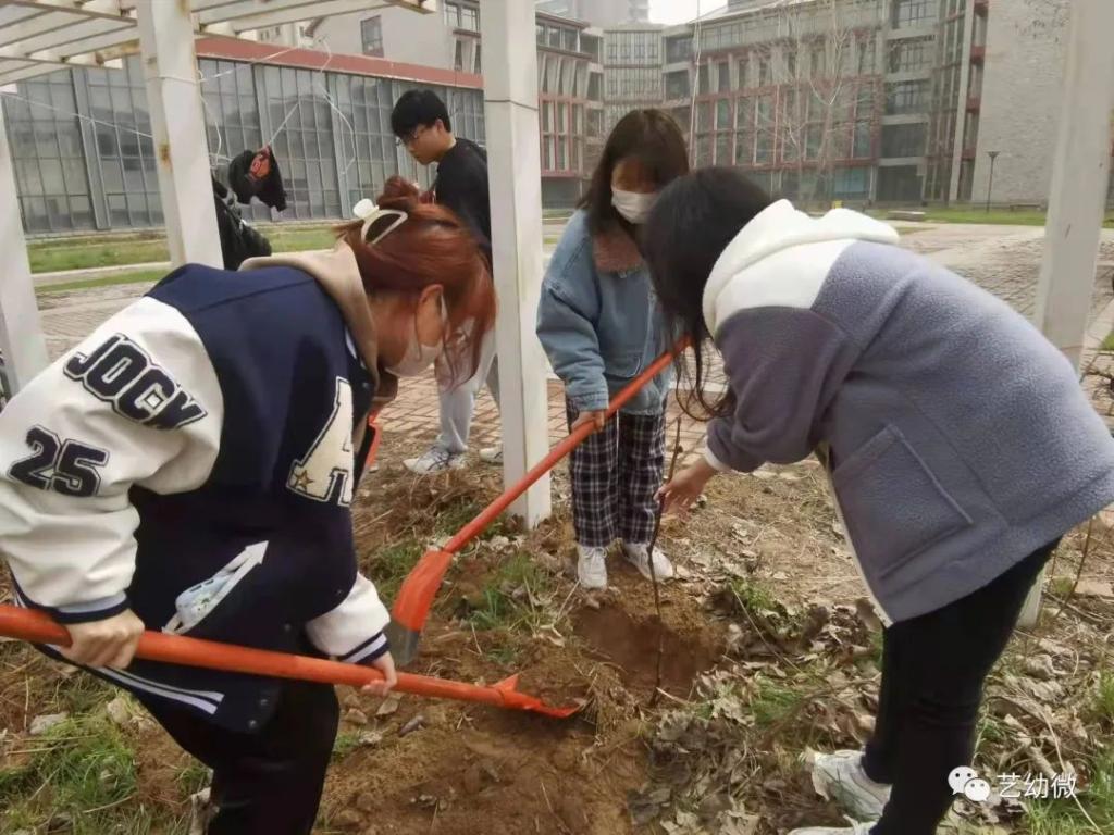 3月14日下午,太阳成集团tyc522cc副经理李海英,党支部副书记穆延柯,党政办主任崔颖,教学办主任车进以及21级辅导员冯凡与20、21级的员工们一起种下一颗颗小小树苗,为校园增添一丝光彩。