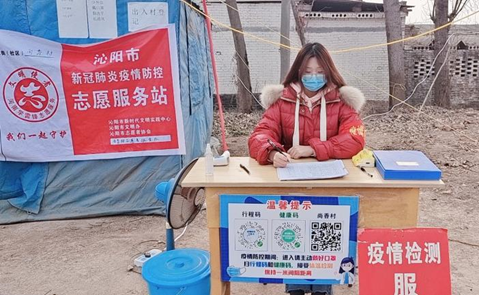 1月9日,20学前1班成佳杰同学在河南省焦作市沁阳市王召乡尚香村志愿服务站参加了疫情防控志愿者服务工作。主要负责为来往村庄的村民检查行程码,并做好体温测量、登记、消毒等措施,为村庄把好第一道防疫大门。