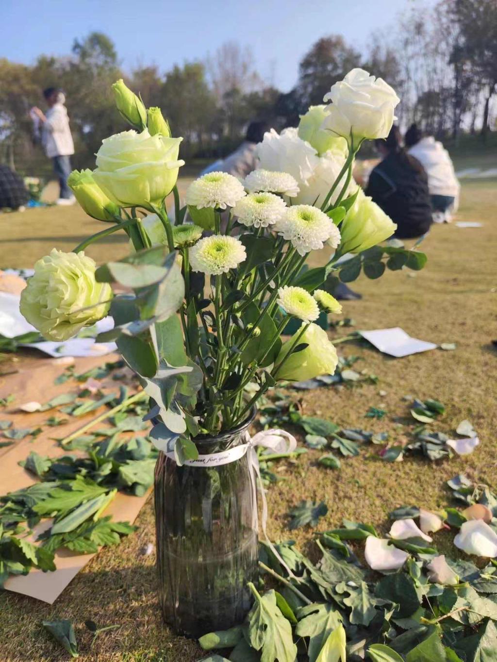 一花一草间感悟生活静美,一枝一叶里找寻生活韵律,为了丰富同学们的课余生活,建设和谐校园,提升审美教育,在花香中感悟生活之美,11月7号下午,太阳成集团tyc522cc辅导员冯凡,组织了22级学前1班的同学们在象湖公园进行插花DIY活动。