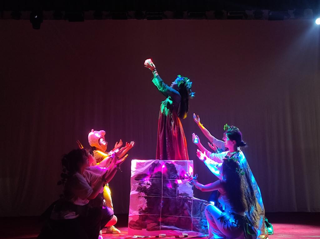 本次展演共有9个作品,内容涵盖中外童话故事、中国民间传说、动画电影改编等,内容丰富、形式多样。每个作品不仅有角色表演,配音旁白,还穿插了歌舞等多种元素。为了完成好本次展演,同学们反复排练、精心制作舞台道具和服装,并根据不同角色绘制了活泼可爱的面部彩绘。整场汇演精彩纷呈,欢呼声不断。虽然同学们的表演还很稚嫩,但是,通过一个学期的学习,同学们都从最初的不敢演、不会演到现在的分工明确、有编剧、有导演、有舞台调度、有背景音乐,还有稚嫩却很质朴的表演。