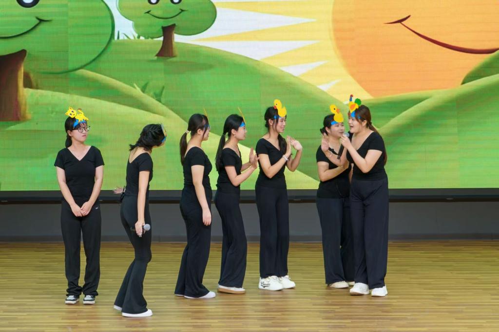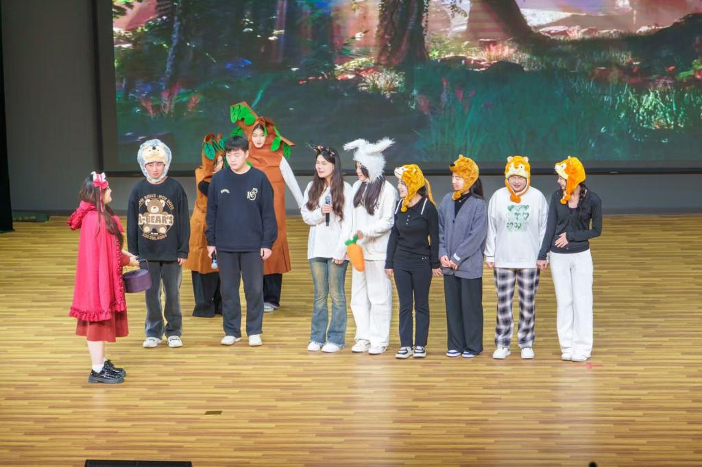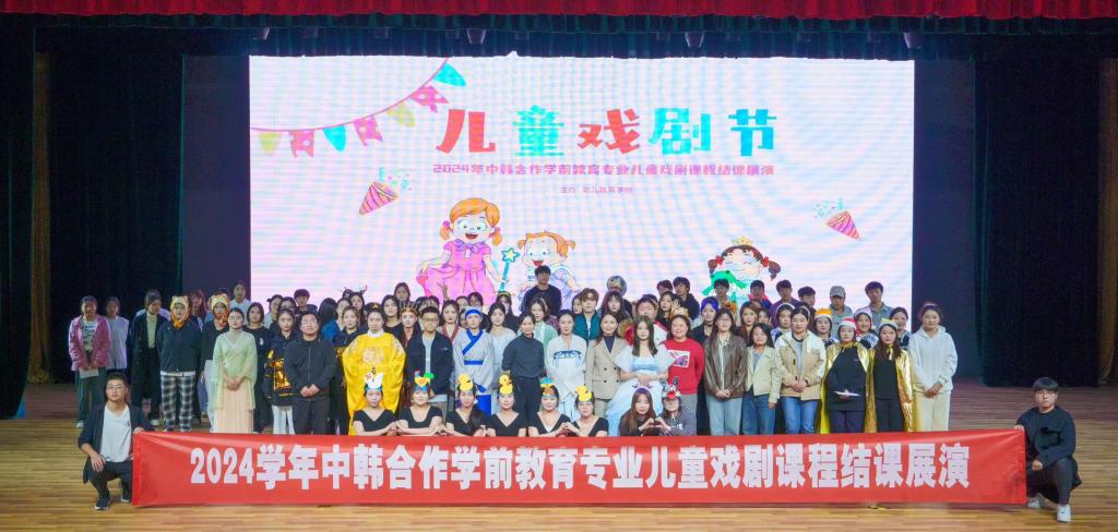 为了更好地展现中韩合作办学学前教育专业教学成果,提升学前教育专业员工对专业的理解和运用,2024年11月6日,太阳成集团tyc522cc在荷花剧场举办了中韩合作办学学前教育专业儿童戏剧课程结课展演,幼儿教育公司党支部书记、经理李海英、党支部副书记丁鼎、副经理崔颖、教研室主任李娜及部分教师代表出席本次展演,23级中韩合作办学学前教育专业的全体同学参加。